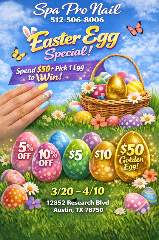 At Spa Pro Nails! We are a team of qualified and experienced nail technicians with a talent for nail and beauty care. Located at 12852 Research Blvd, Austin, TX 78750. You can find us easily and get your nail care services done perfectly and without much hassle. Make your appointment with us at 512-506-8006 and pamper your body to a relaxing spa day! We hope to see you soon!